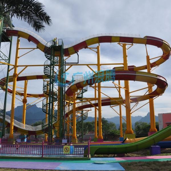 水上滑梯水上飛龍滑梯,廣州浪騰水上樂園設備廠設計-生產-安裝-調試-驗收。全程跟蹤,一手包辦。此款水上滑梯又稱水上過山車滑梯,該水滑梯是利用“水懸浮”技術,給合水的噴射推力及慣性,讓載有2~3人的皮筏艇,時而由上而下地俯沖,時而由下向上沖坡登高,讓游客不斷地體驗由失重到超重,再由超重到失重的瞬間轉換所帶來的娛樂快感,它顛覆了傳統的玩水理念,是水上樂園中體驗非常好的水滑梯之一。