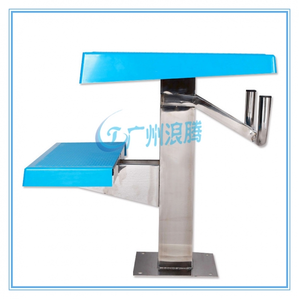 本游泳比賽專用出發臺符合游泳比賽標準,為二階出發臺,出發臺面為玻璃鋼材質,表面有防滑材料。