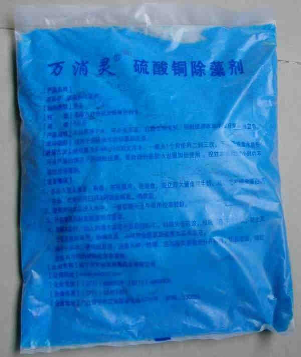 硫酸銅,用作泳池除藻和青苔,是水處理的常用藥劑之一。主要含量為銅。每月兩至三次定期投放可預防藻類的生長。用法用量為3-6KG/1000立方水。