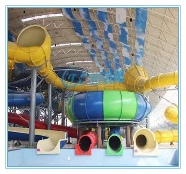 翻江倒海滑道,游客從15-19米空平臺(tái)乘著可以容納4個(gè)人的四葉草形皮筏浮墊滑進(jìn)滑道,經(jīng)歷一段奇妙之旅。高速穿越一段二十多米的螺旋滑槽后,進(jìn)入一個(gè)巨大封閉圓形的球體中,急速旋轉(zhuǎn),從球體出來后又旋轉(zhuǎn)滑行至滑道,旋轉(zhuǎn)數(shù)圈后落到池子。將帶給你與眾不同的滑行快樂體驗(yàn)。一般做兩條到多條。由于該設(shè)備體積龐大,形狀獨(dú)特壯觀可以作為大型水上樂園設(shè)備中的拉票賣點(diǎn),標(biāo)志性設(shè)施。