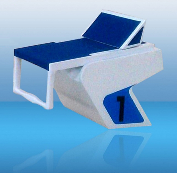 2、出發(fā)臺的后端配有蹬腳起跳裝置,運動員可以根據(jù)自己的需要使用蹬腳起跑裝置的位置。